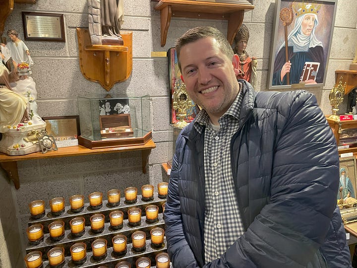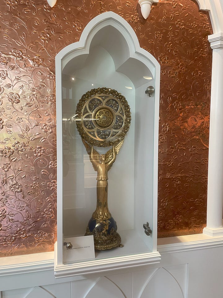By all accounts, this was a normal Mass. There were normal people, some of whom were very reverently focused, others of whom were wrangling in their small children like me at most Masses. There was normal music with some of the congregation singing loudly and others completely silent. Like all parishes, some left right after Communion and others stayed to pray after Mass. Some were no doubt aware of the thousands of amazing relics which surrounded them, and for other long-time parishioners the relics have become nothing more than wallpaper in the background — hardly noticed at all. Yet, just like the relics in that Shrine, it is in the normal everyday ‘messiness’ of our lives that the saints surround us, and encourage us by both their prayers and their witness.