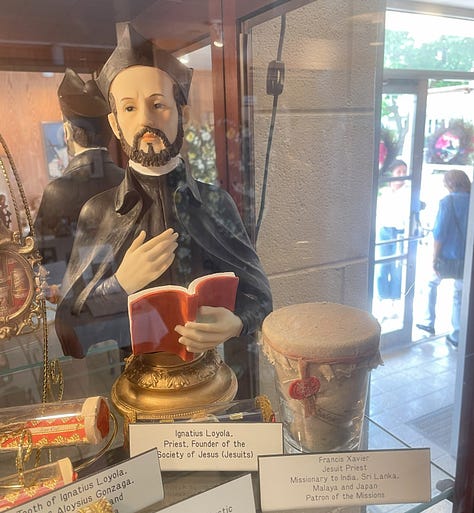 I attended the 4:00pm Vigil Mass at the Shrine of All Saints that evening, and was struck by how the readings and songs seemed to line up with all the relics that surrounded the perimeter of the church. The first reading was from the book of Acts, chapter fourteen, which said, “After Paul and Barnabas had proclaimed the good news to that city… They strengthened the spirits of the disciples and exhorted them to persevere in the faith, saying, ‘It is necessary for us to undergo many hardships to enter the kingdom of God.’ ” The bones of Paul and Barnabas were located in the back left of the Shrine. One of the lines of the responsorial psalm from Psalm 145 was, “Your kingdom is an everlasting kingdom; your rule endures for all generations.” I was surrounded by thousands of relics from every generation of Church history!