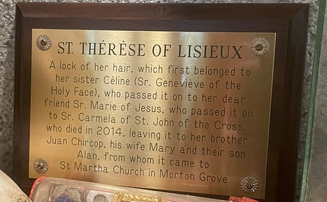 Relic of St. Thérèse’s Hair at the Shrine of All Saints in Morton Grove, IL: